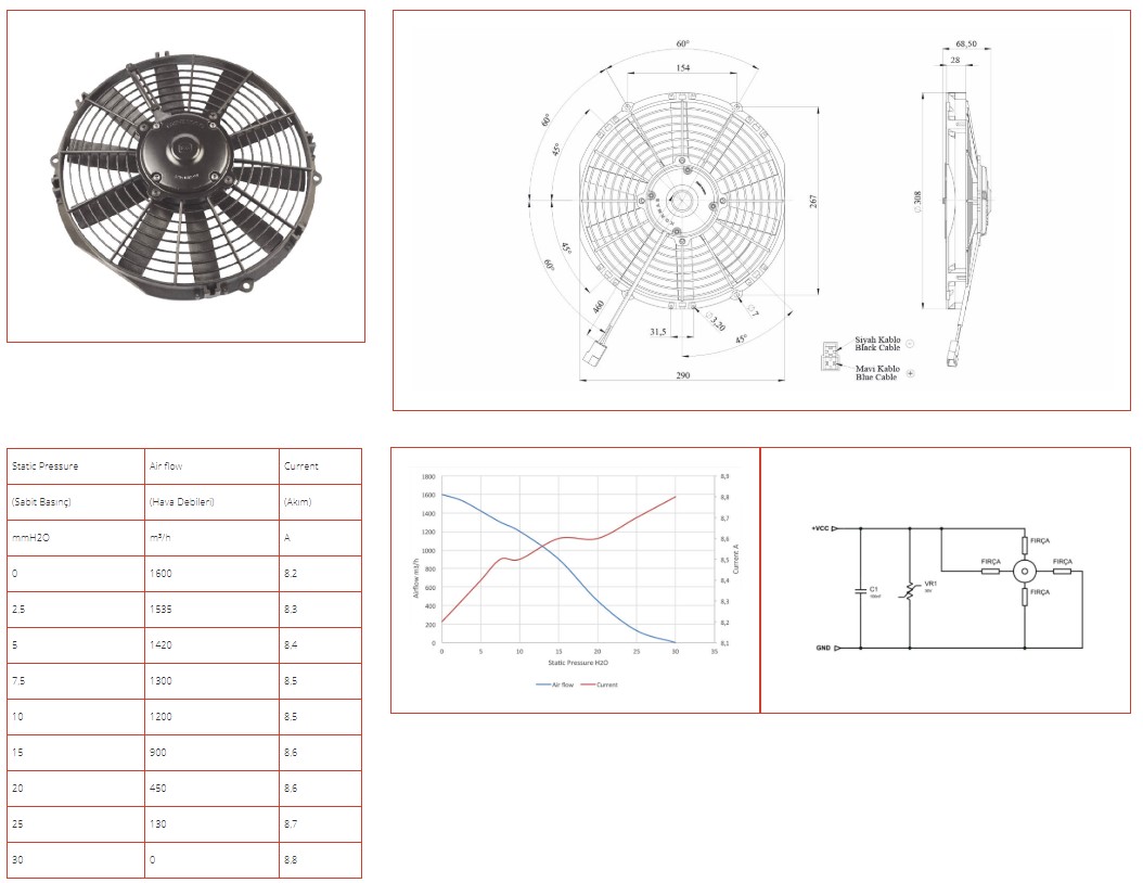 12V, Gövdeli Aksiyel, Üfleç, 11″ 280mm, 1600m3/h, İnce Motor , 743 160 00 / 5 702 211 120 003